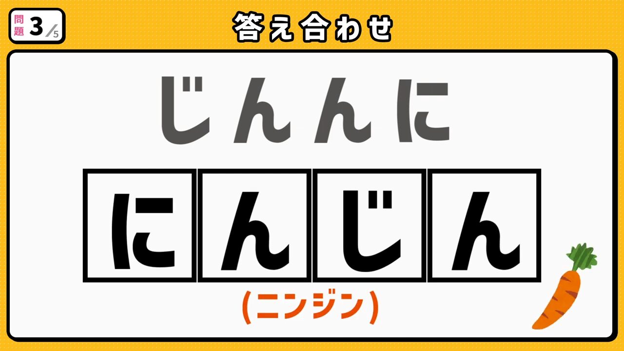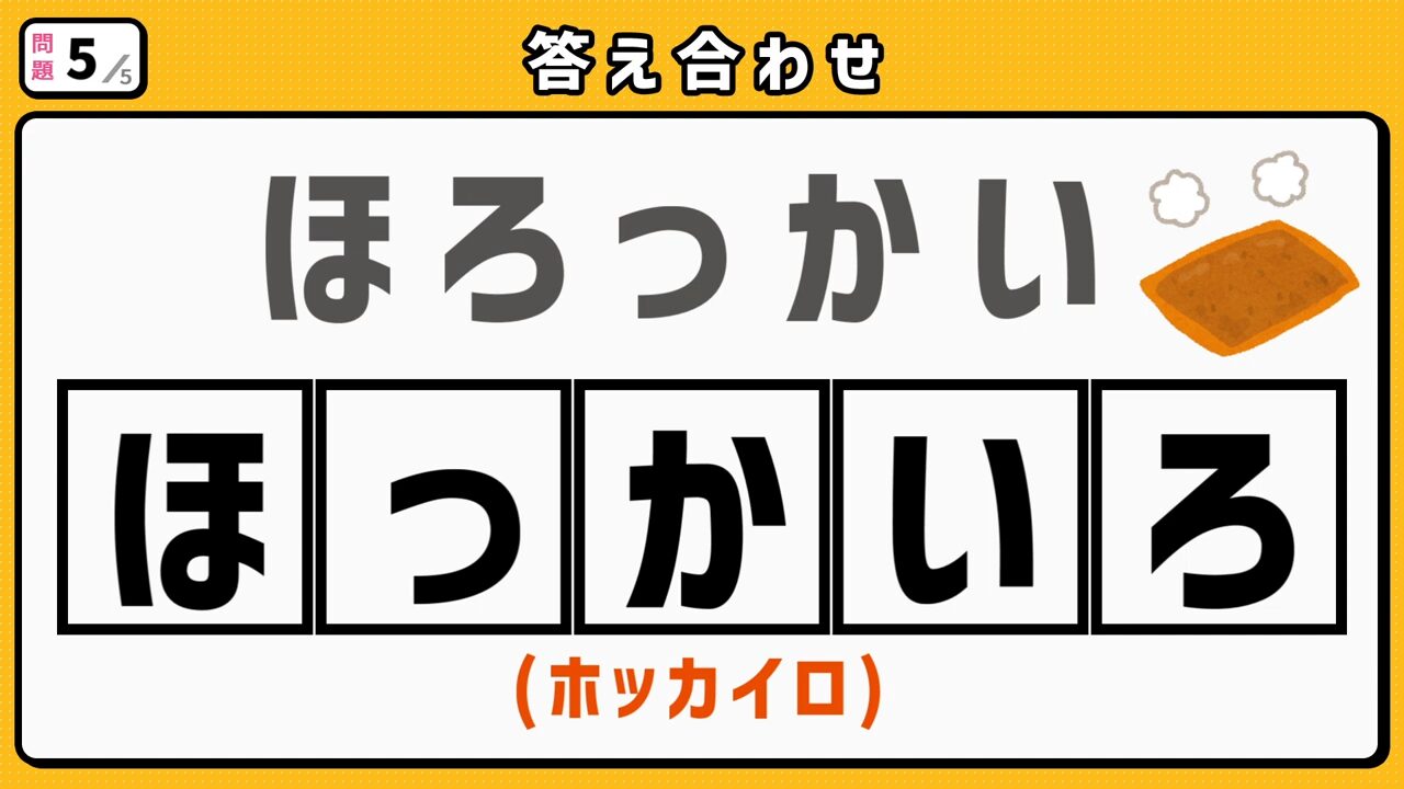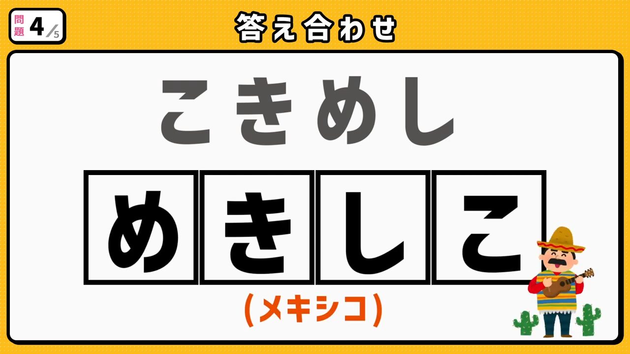 上の動画は今回のひらがな並び替えクイズの動画版です。