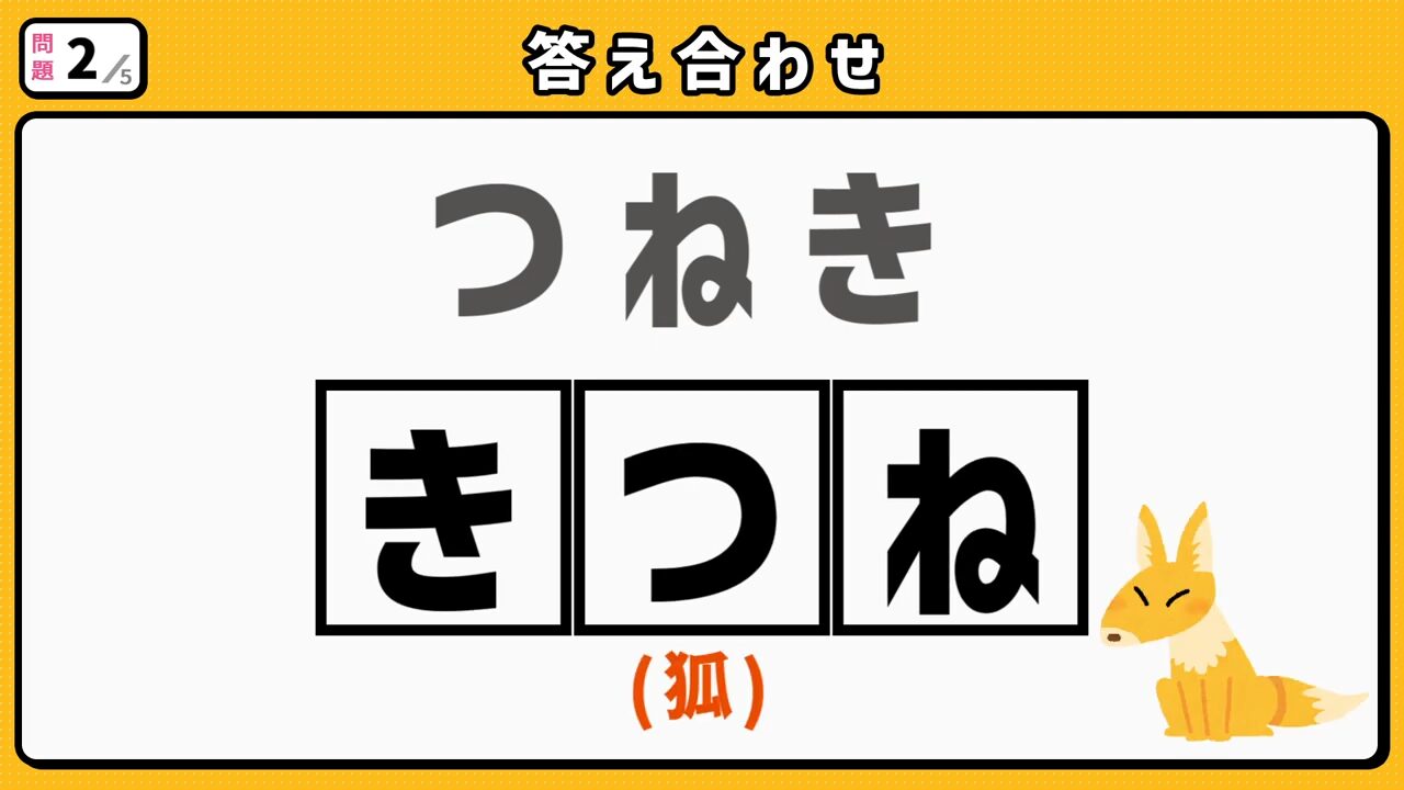 上の動画は今回のひらがな並び替えクイズの動画版です。