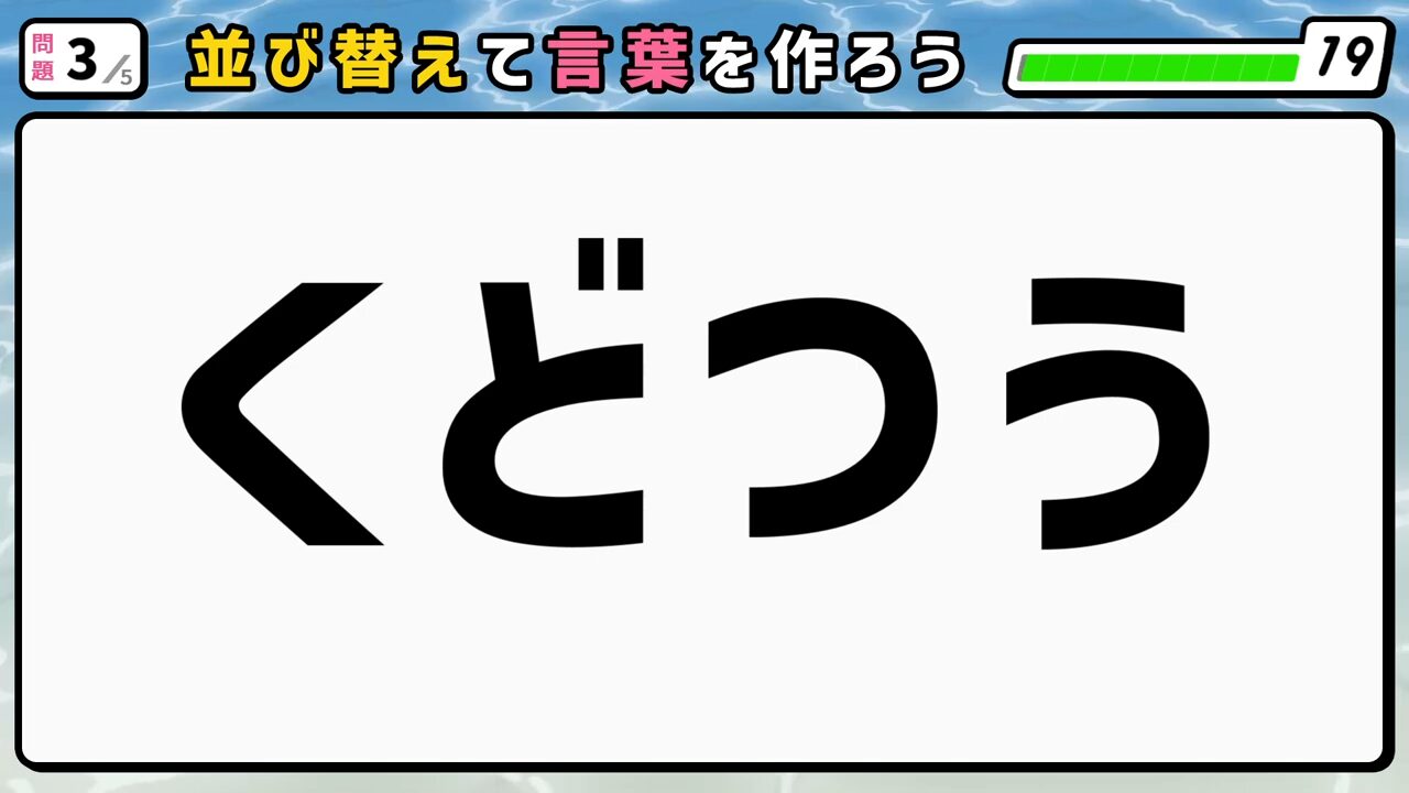 文字を並び替えて言葉を作ってください。問題は全部で5問です。