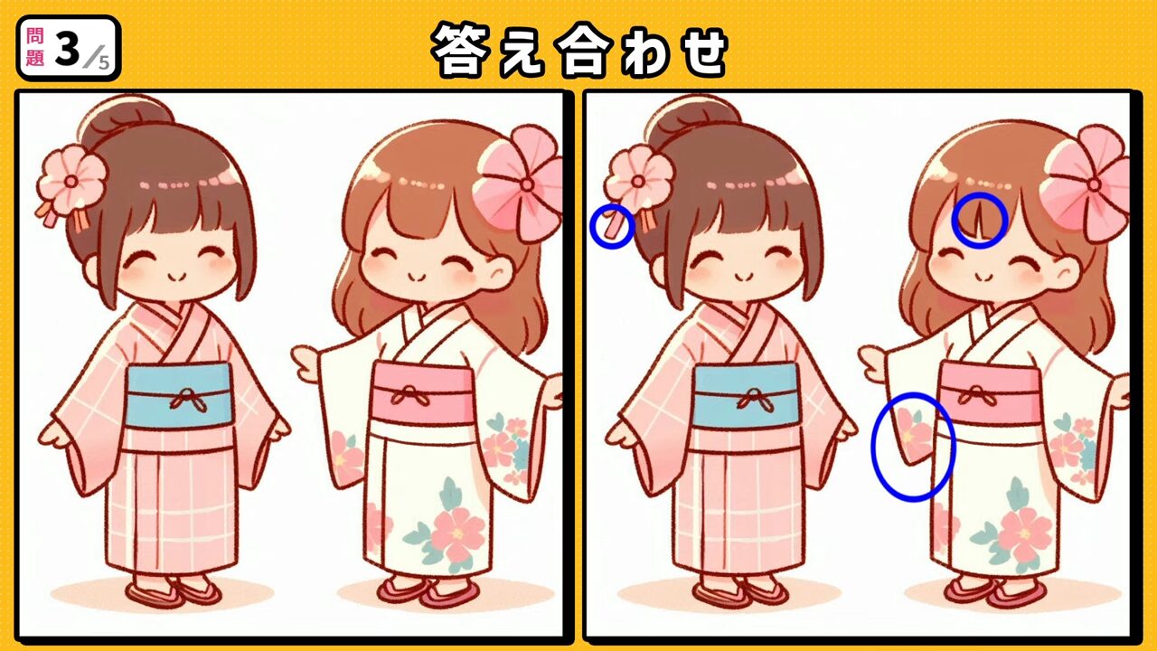 今回の間違い探しクイズの動画版です。