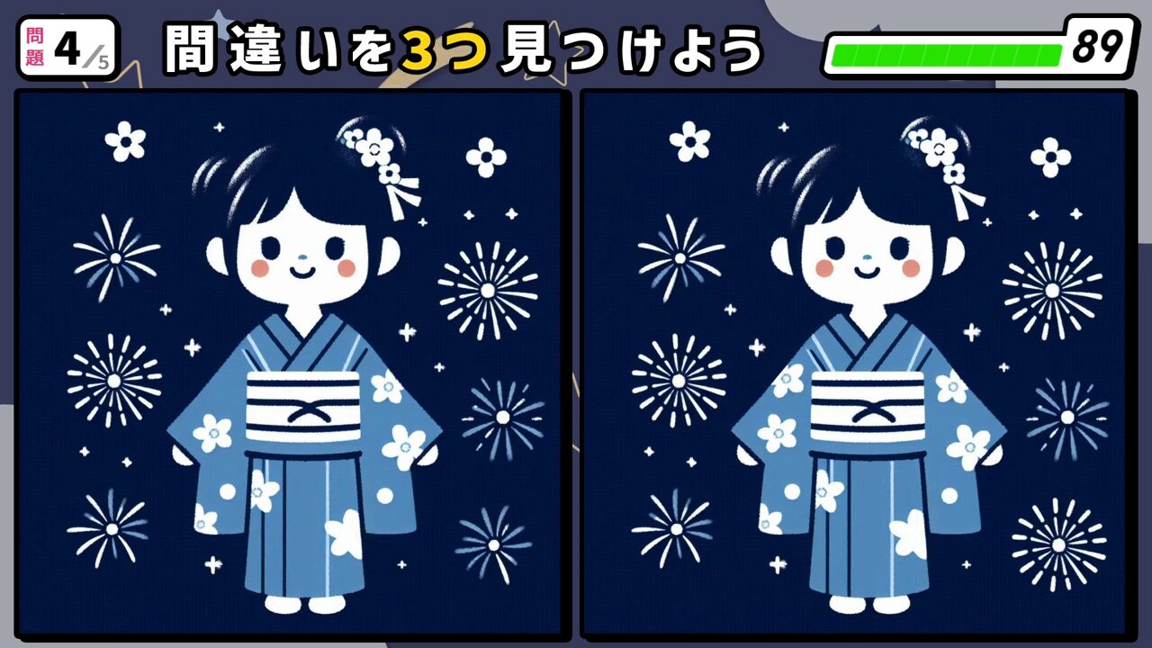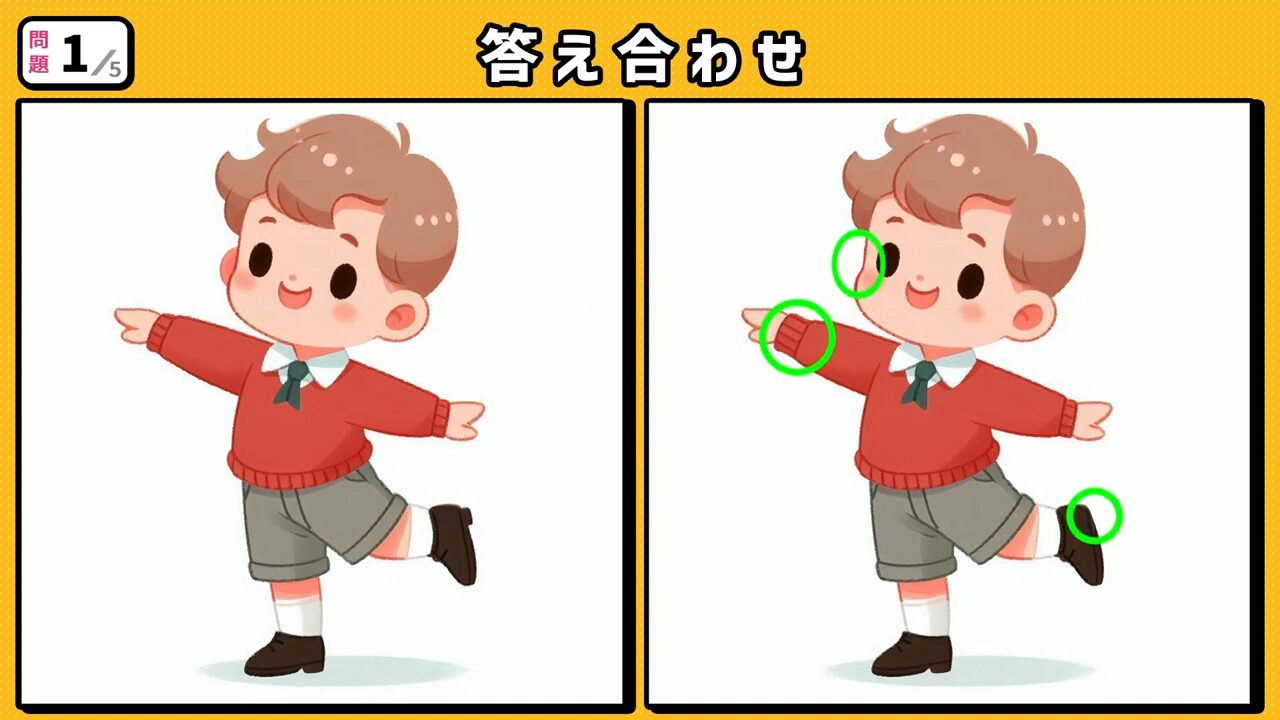 今回の間違い探しクイズの動画版です。