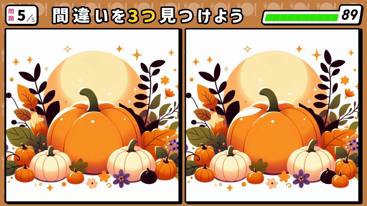 第5問 最終問題 たくさんのカボチャと秋の葉