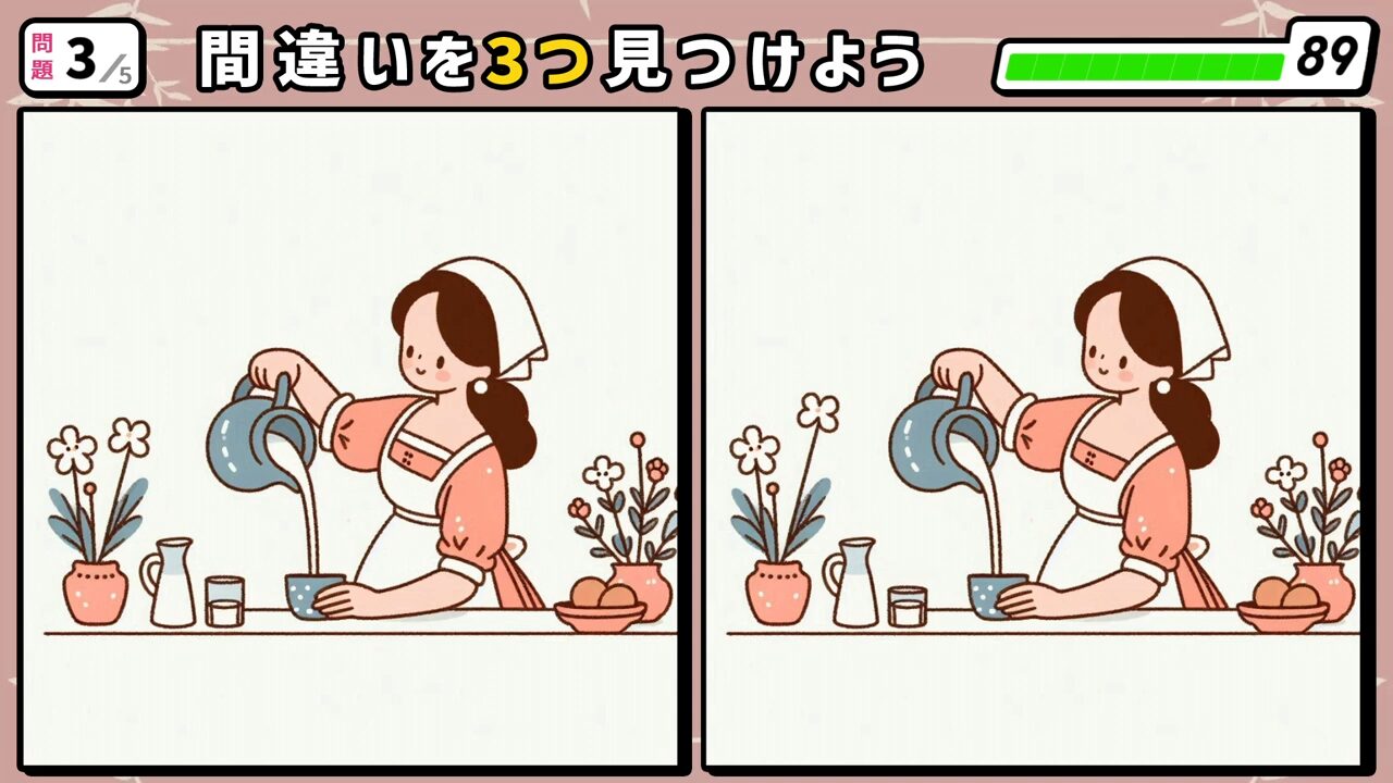 今回の間違い探しクイズの動画版です。