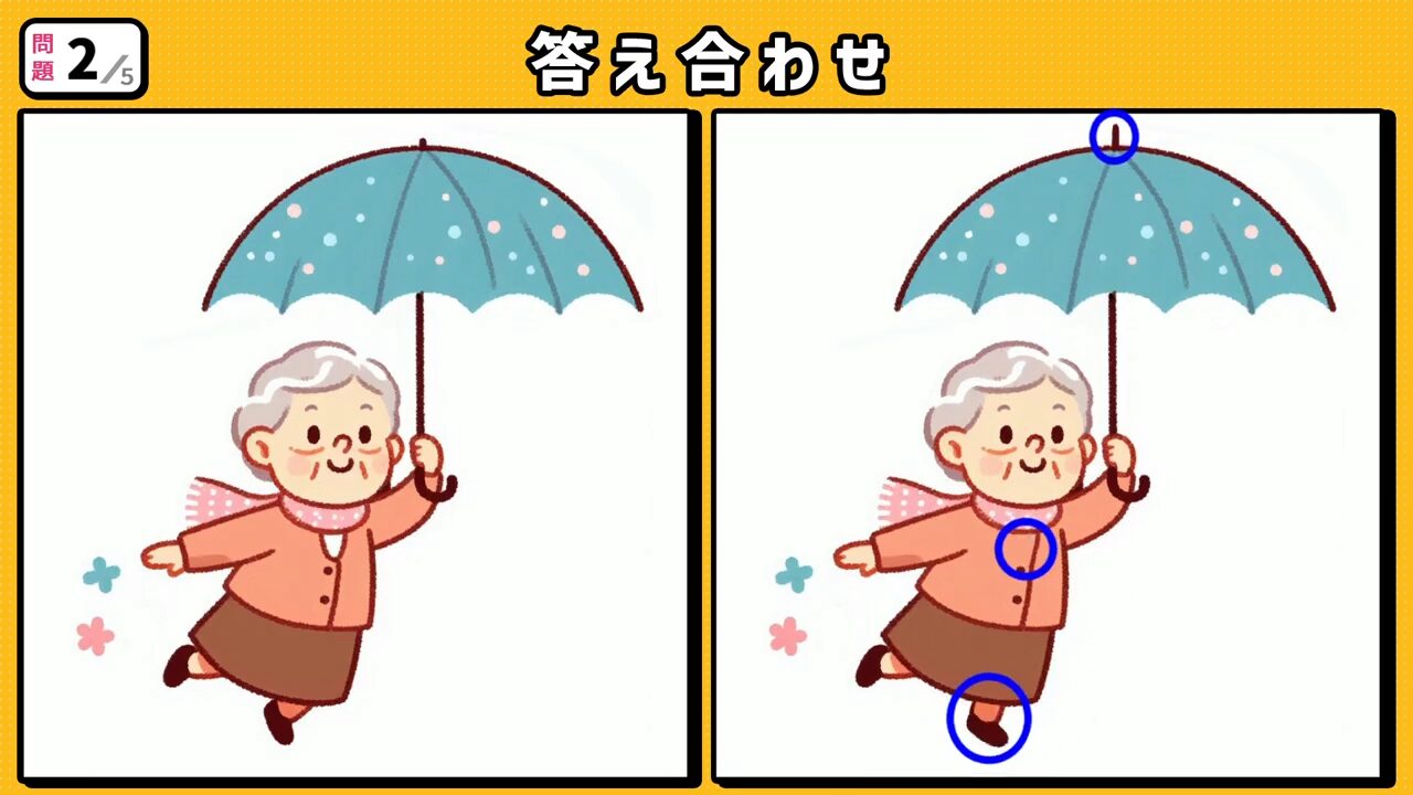 #205 問題2 間違い探し 傘をさすお婆ちゃん