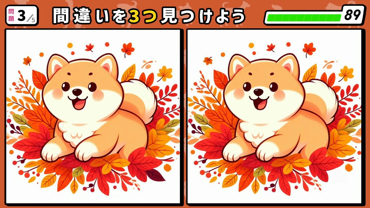 第3問 紅葉した葉から元気いっぱいに飛び出す柴犬
