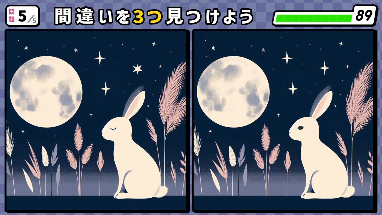第5問 最終問題 ススキが生えている場所で月見をしているウサギ