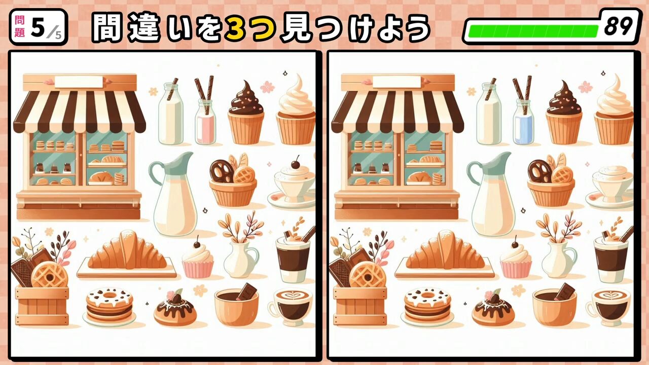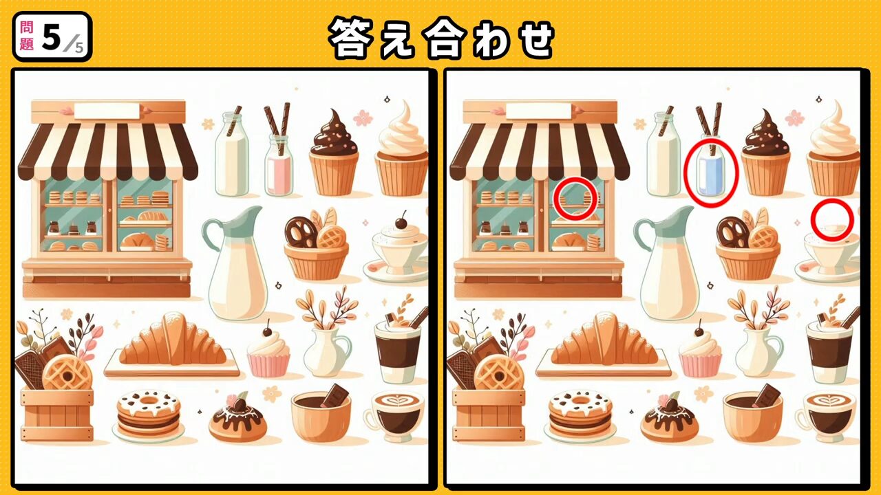 回答3:右側 クリームの上に乗っていたサクランボが消えて無くなっています。