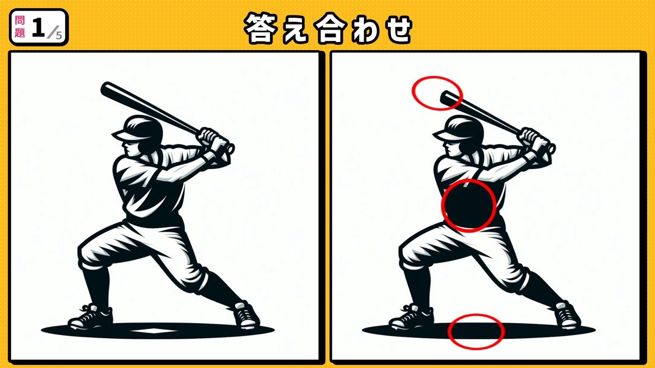 今回の間違い探しクイズの動画版です。