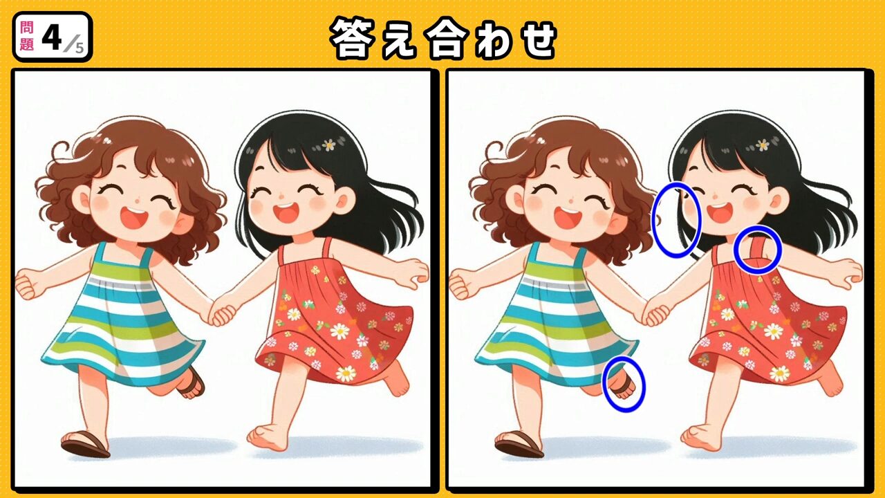 第4問 手をつないで笑顔のワンピースを着た女の子達