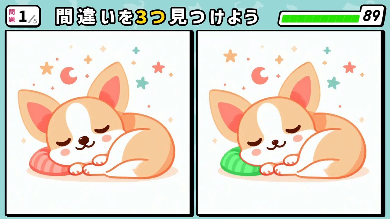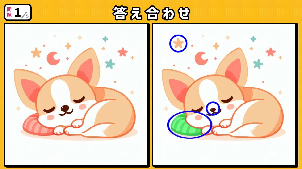 今回の間違い探しクイズの動画版です。