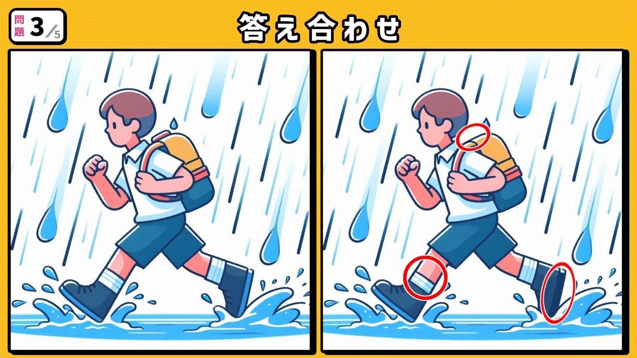 間違いを3つ探してください。問題は全部で5問です。