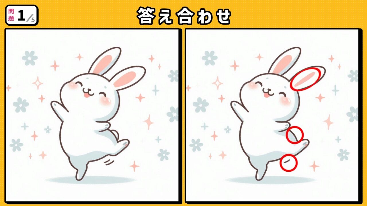 今回の間違い探しクイズの動画版です。