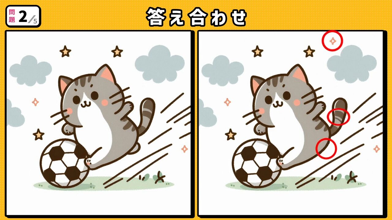 #26 問題2 間違い探し サッカーボ-ルを蹴るネコ