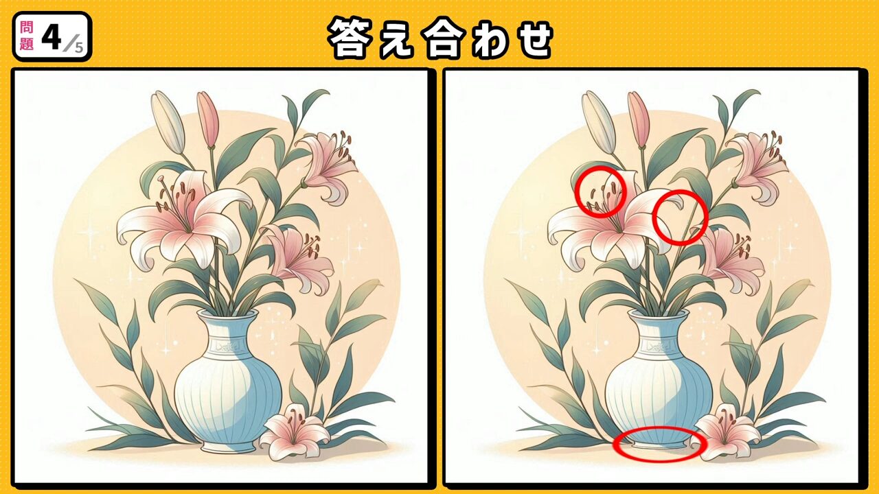 #26 問題4 間違い探し 花瓶に入った百合の花