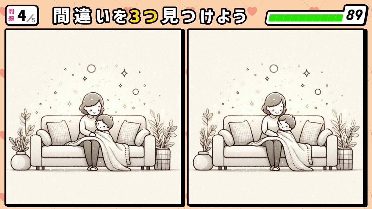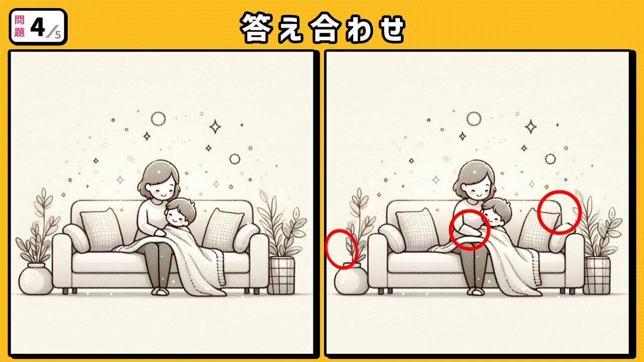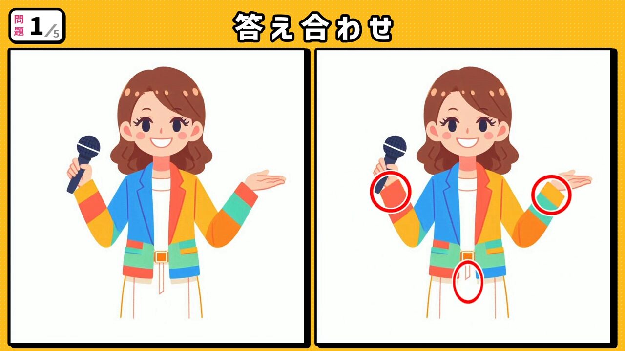 今回の間違い探しクイズの動画版です。