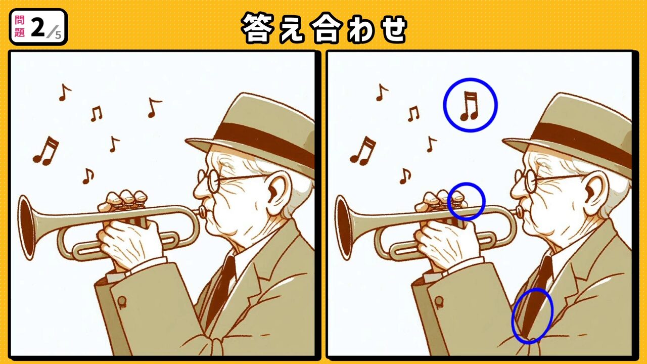 第2問 ラッパを演奏するスーツを着たおじいちゃん