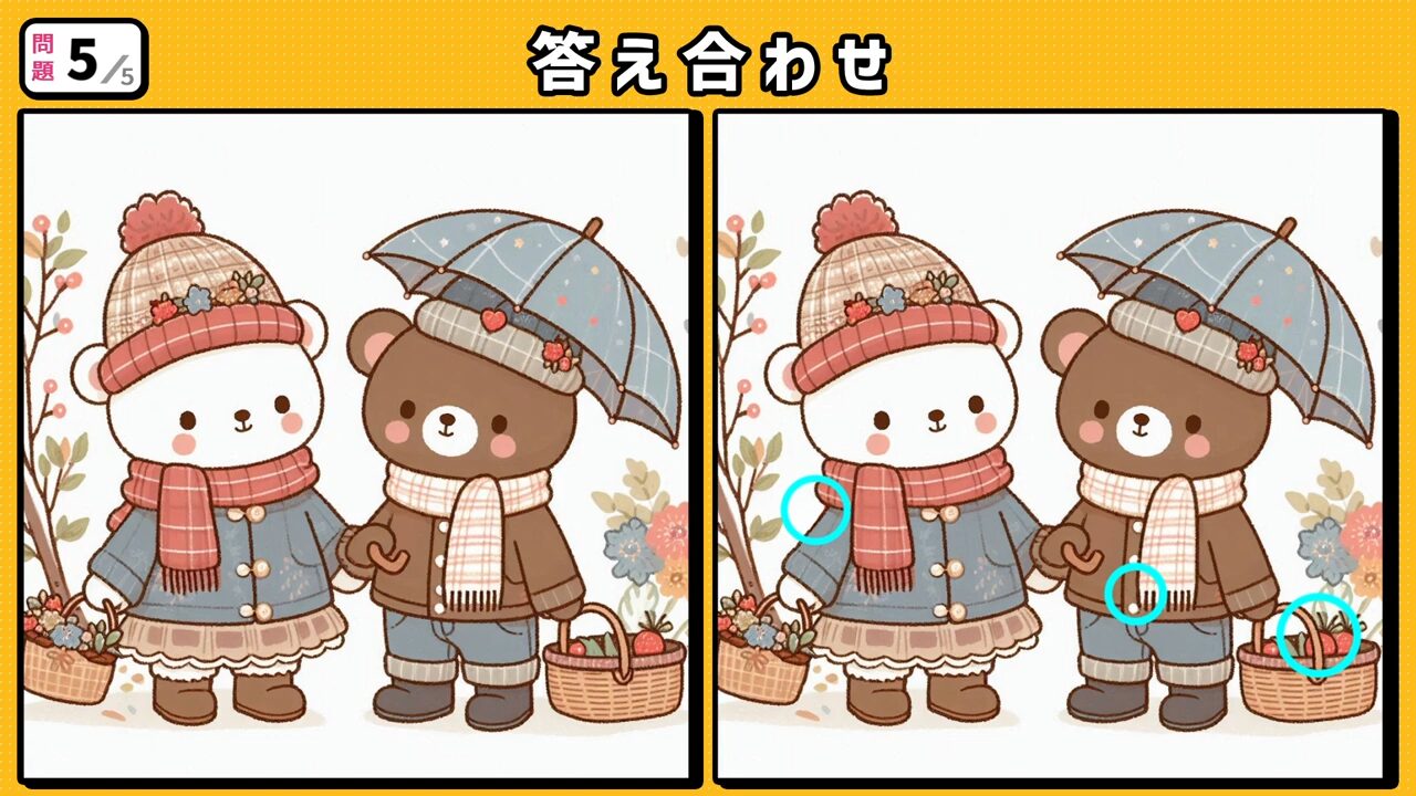 今回の間違い探しクイズの動画版です。