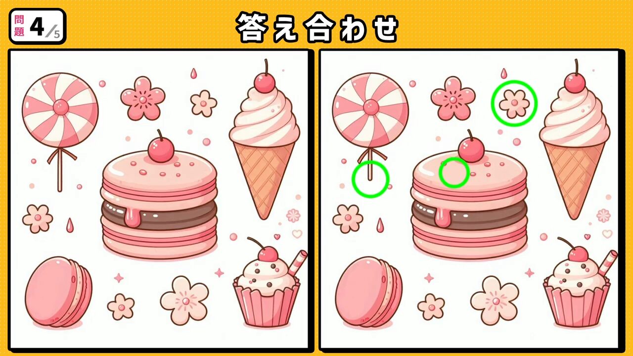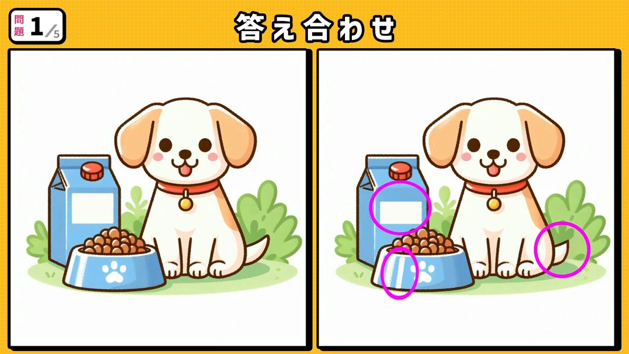 今回の間違い探しクイズの動画版です。