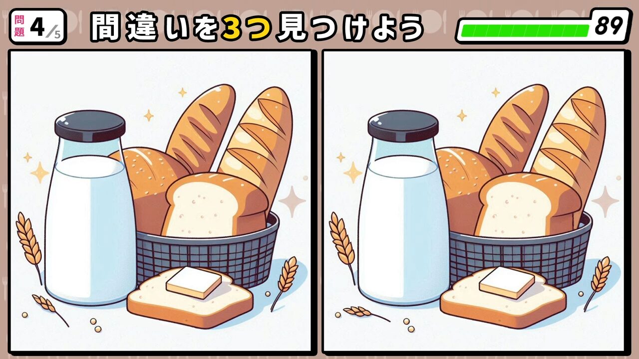 今回の間違い探しクイズの動画版です。